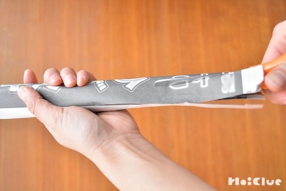 3. テープでとめていない方の先に、10cm程の切り込みを4本入れる。