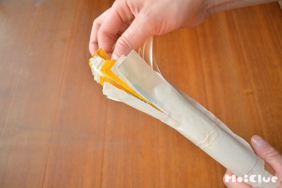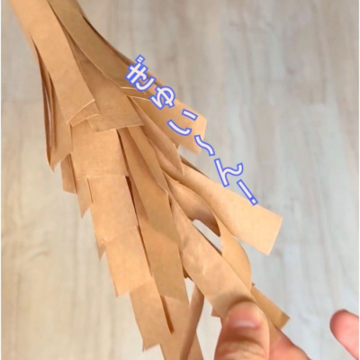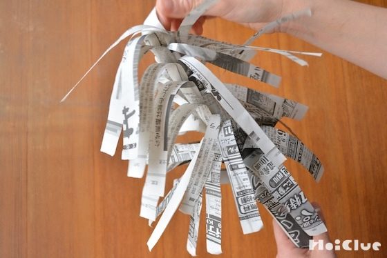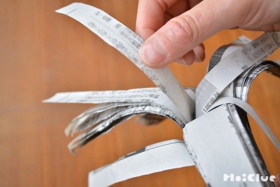 4. 切り込みを入れた1番内側の新聞紙を引っ張ると…