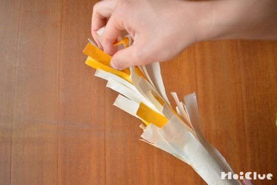 - 引っ張る部分だけに色画用紙を巻くと、見た目もカラフルになり、補強にもなる。