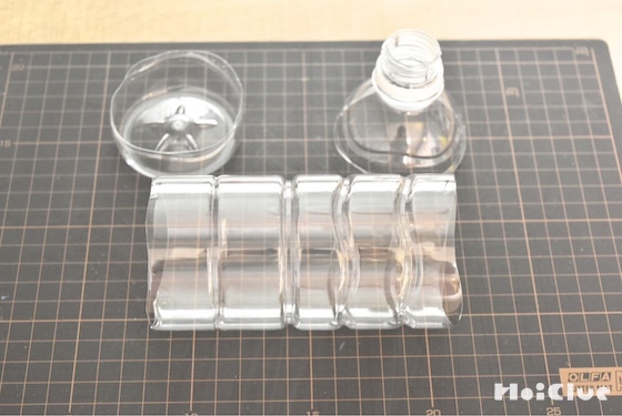 1、ペットボトルの上(口の部分)と下(底の部分)の部分を切り離して、3等分にする。
