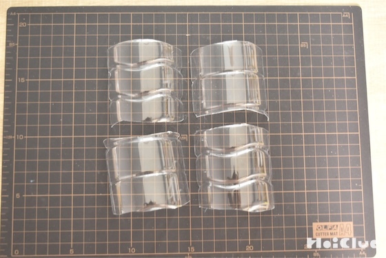 5、アルミホイルの上にカットしたペットボトルが重ならないように並べ、トースターで温める。(200℃ほどに温めておくのがおすすめ。)