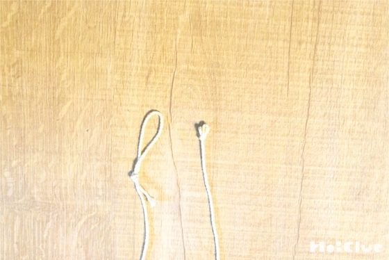 反対側は指が入るくらいの大きさで輪っか結びにする。(子どもたちの姿に合わせて、大人がサポートしてください。)