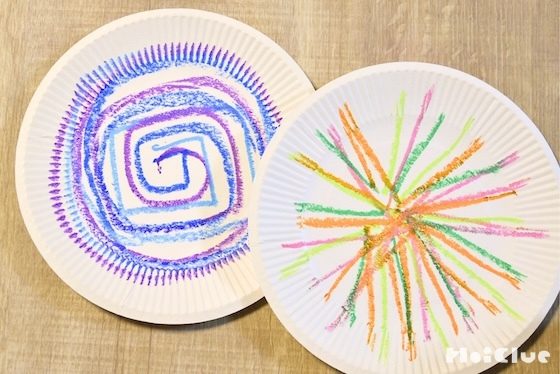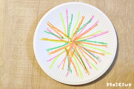 - 紙皿のまわりに折り紙や色画用紙で飾りをつけて、花や好きな生きものなどアレンジするのもおもしろそう。