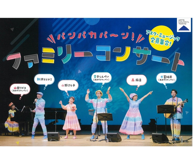 アスク・ミュージックに所属する6人、新沢としひこ・山野さと子・森麻美・あおぞらワッペン(金子しんぺい・千葉純平・山田リイコ)が力を合わせて、とびきり楽しいステージをお届けします。