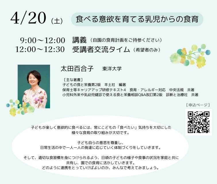 講義:9:00〜12:00(自園の食育計画をご持参ください)