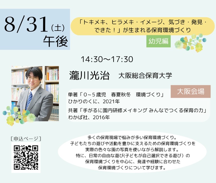 子どもたちの遊びや活動を豊かに支えるための保育環境づくりを実際の色々な園の写真を使いながら解説します。