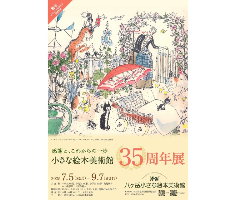 開館35周年を記念し、交流を深めてきた国内外の絵本作家の作品を一堂に展示します。子どもから大人まで、ぜひ夏の絵本美術館に遊びにおこしください。