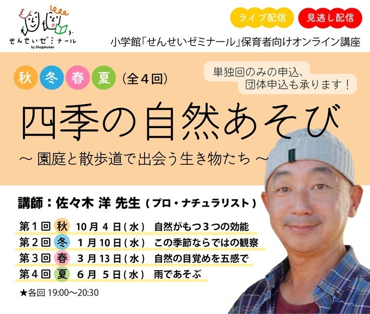 各地の園を訪れて、子どもと保育者に観察を通して、自然の面白さや不思議を伝えてきたプロ・ナチュラリスト、佐々木洋さんの連続オンライン講座です。