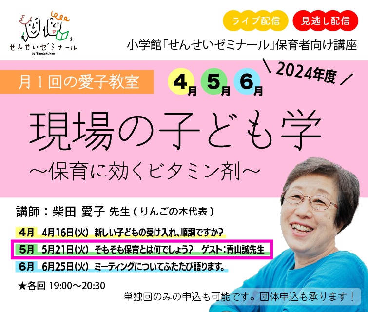 「りんごの木子どもクラブ」代表の柴田愛子先生による連続オンライン講座です。