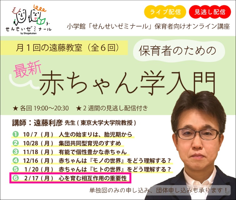 【小学館せんせいゼミナール】保育者のための『最新赤ちゃん学入門』第6回(遠藤利彦先生)
