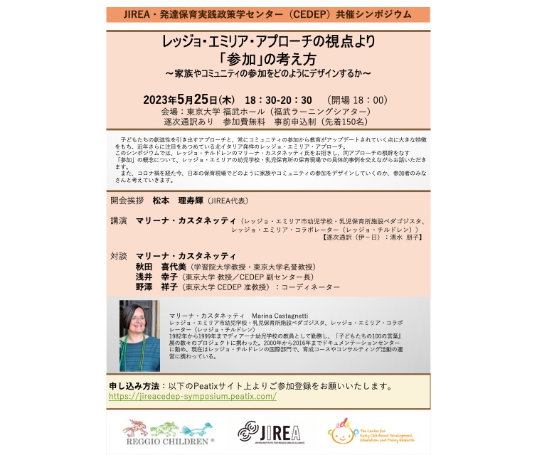 JIREA・CEDEP共催シンポジウム レッジョ・エミリア・アプローチの視点より:「参加」の考え方〜家族やコミュニティの参加をどのようにデザインするか〜