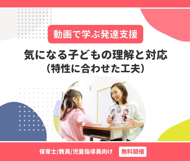 さまざまな特性の解説や、気になる子どもの特性に合わせた対応の工夫をお伝えする無料アーカイブ配信です。