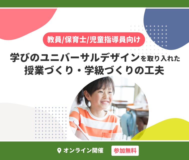 ちょっとした工夫で始められる、ユニバーサルデザインの視点を取り入れた授業づくり・学級づくりのポイントと工夫例をお伝えする無料アーカイブ配信です。