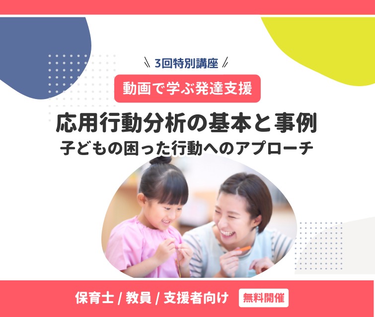 子どもの困った行動へのアプローチをテーマに、応用行動分析の基本と事例を学ぶ全3回の講座をご視聴いただける無料アーカイブ配信です。