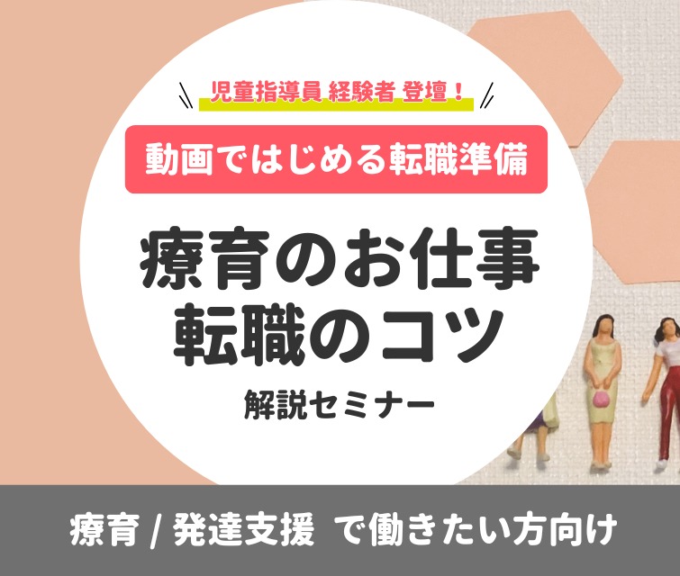 療育/発達支援で働きたい方・就業中の方に向けて、療育のお仕事・転職のコツを解説するセミナーの無料アーカイブ配信です。
