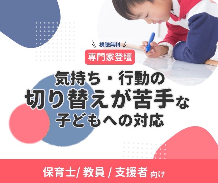 気持ちや行動の「切り替え」が苦手な子どもへの支援をテーマに、考え方・具体的な対応方法を解説する無料オンデマンド配信です。