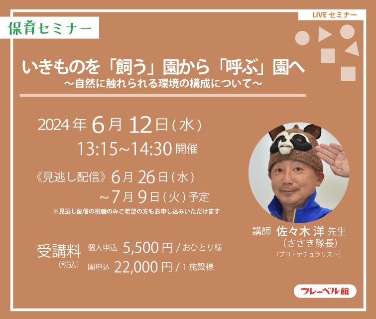 - <受講料>個人(おひとり様):5,500円(税込)/園(1施設様):22,000円(税込)