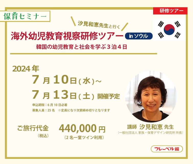 ※「海外幼児教育視察研修ツアーinソウル」の詳細はこちらをご覧ください。
