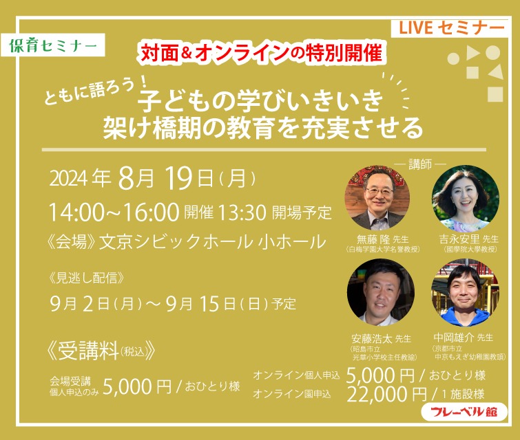 【8/19特別開催】ともに語ろう!子どもの学びいきいき架け橋期の教育を充実させる