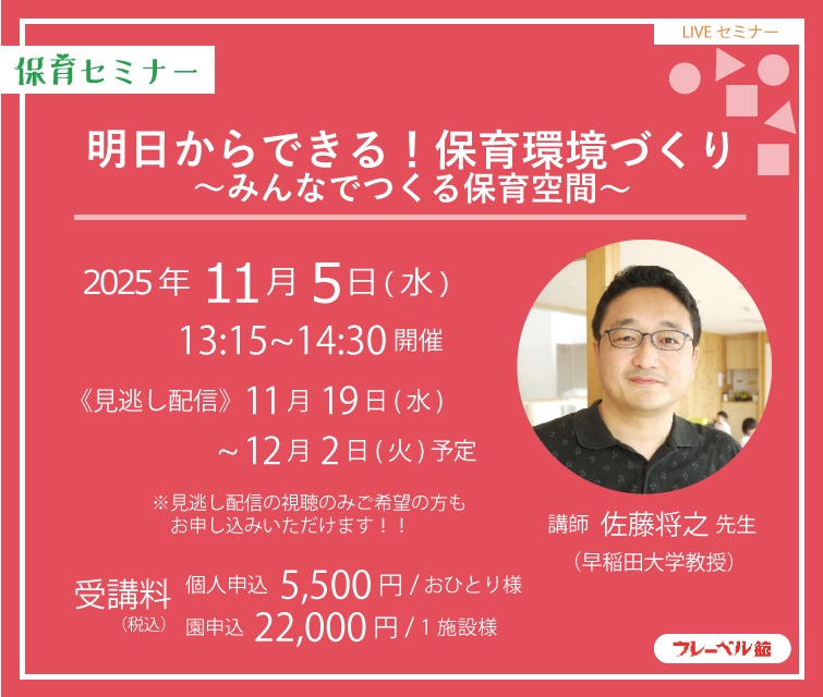 - 個人申込:5,500円/1名様、園申込:22,000円/1施設様