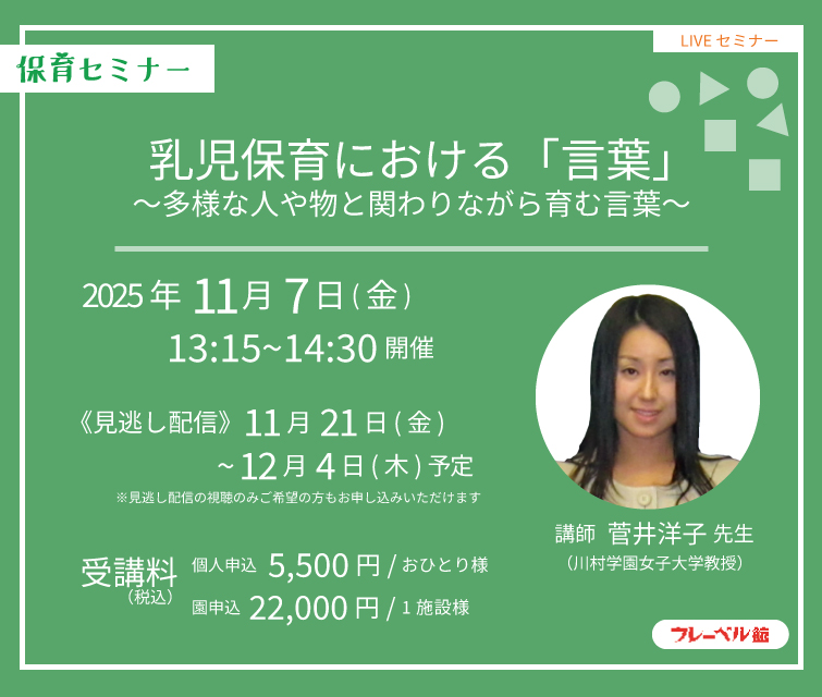 - 個人申込:5,500円/1名様、園申込:22,000円/1施設様
