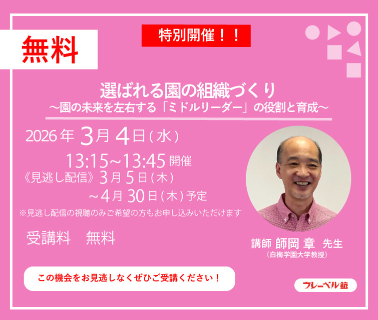 「【無料】特別開催!選ばれる園の組織づくり〜園の未来を左右する「ミドルリーダー」の役割と育成〜」