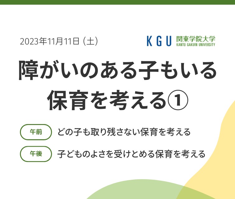 障がいのある子と共につくる保育について、実践例を交えて紹介します。発達障がいのある子、医療的ケアの必要な子、多様な子どもの“良さ”や“主体性”を大切にした保育について参加者と考えていきます。