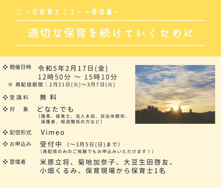 にっぽ保育セミナー<特別編>~適切な保育を続けていくために~