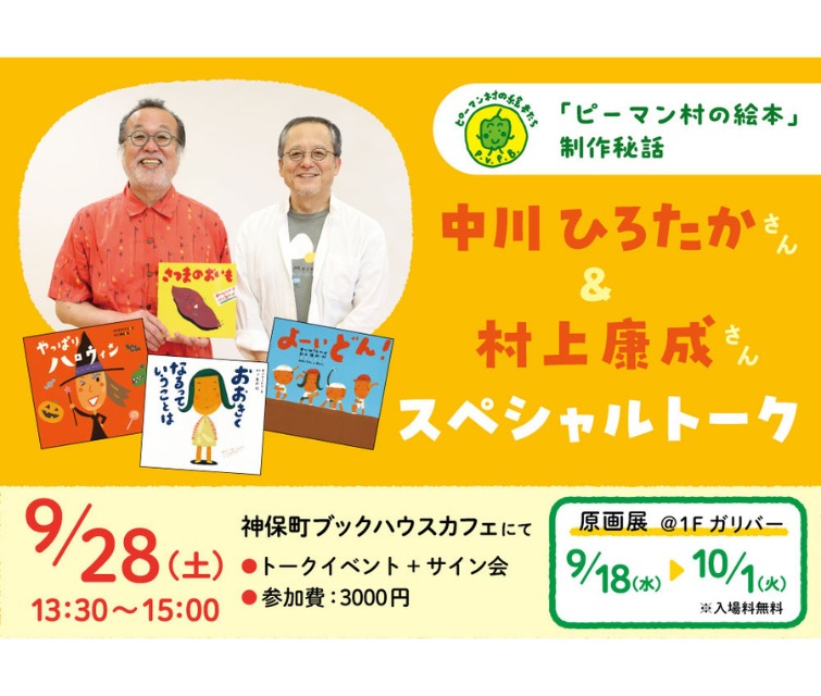 このたび、ブックハウスカフェにておふたりのスペシャルトークイベントが行われることになりました。子どもたちに愛されつづける数々の作品がどのようにうまれたのか。制作の裏側やエピソードについて、編集者を交えながら語ります。