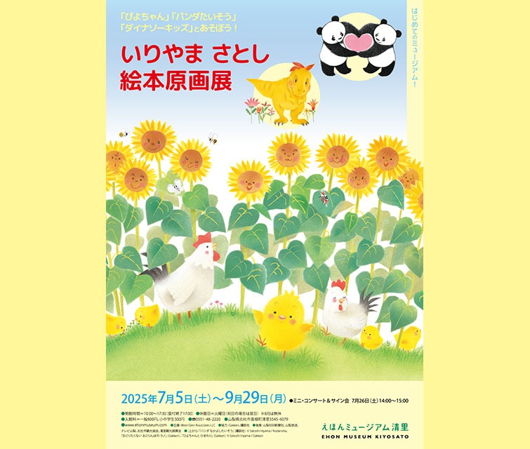 「ぴよちゃんえほん」、「パンダたいそう」、「ダイナソーキッズ」、3つの人気絵本シリーズから原画約50点と、試作本やラフスケッチなどの資料を展示します。