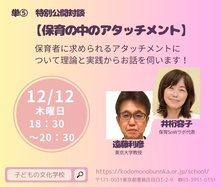 【単⑤】特別公開対談「保育の中のアタッチメント」