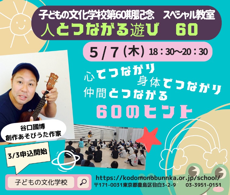 子どもの文化学校第60期記念スペシャル 人とつながる遊び☆60☆ ~心でつながり身体でつながり仲間とつながる60のヒント!