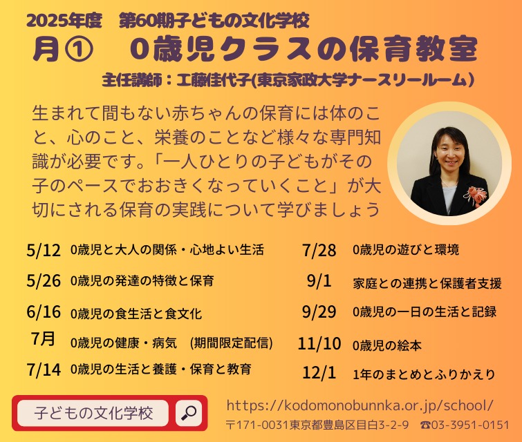 主任講師:工藤佳代子(東京家政大学ナースリールーム)