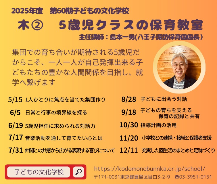 詳細は【木②】5歳児クラスの保育教室【対面講座】をご覧ください。