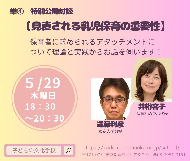 井桁容子先生・遠藤利彦先生の人気講師2人による「特別対談」。毎年恒例となった対談を今年は5月に開催します!