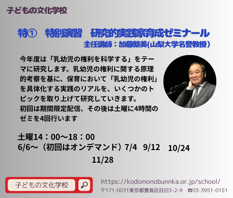 主任講師:加藤繁美(山梨大学名誉教授・子どもの文化学校長)
