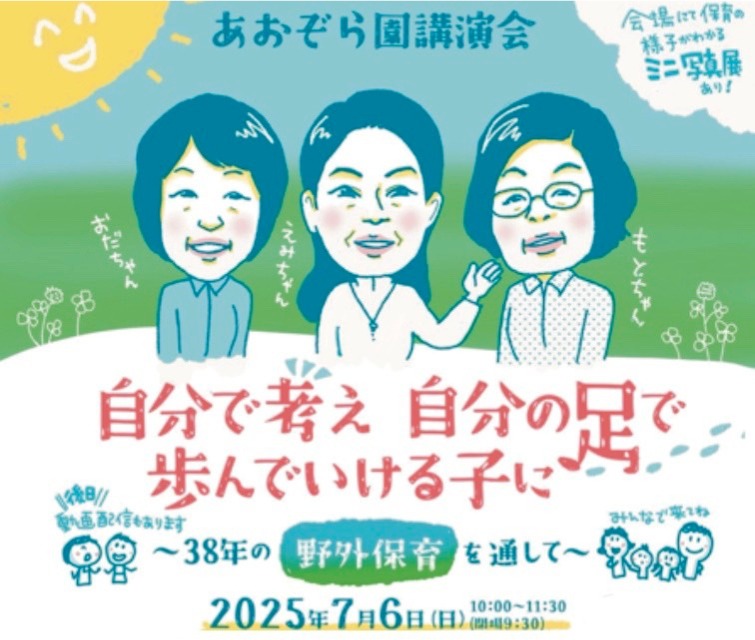 本講演会では、あおぞら園の創設・保育活動を担ってきた3人の先生をお迎えし、保育の内容や大切にしている想い・考えなどについてお話を伺います。2027年度の閉園を前に、これまで積み重ねられてきた保育・子育てのエッセンスをたくさんの皆さまにお伝えできれば幸いです。