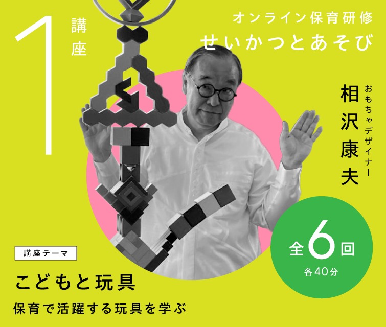 日本でもトップクラスのおもちゃデザイナーである相沢康夫氏を講師にお招きし、保育現場でこどもたちに選ばれてきた玩具をたっぷり紹介していただきながら、玩具の魅力を学びます。