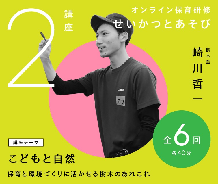 ここ数年の子育てを巡る環境の大きな変化の中で、「遊び」を支えるための「生活」の土台が、急激に脆弱になっていく危機感を感じます。豊かな遊びは、豊かな生活によって生み出されます。こどもとの生活をつくり、そこに遊びを生み出す。そのような学びの必要性を強く感じ、2024年度まで「あそびの庭」として運営していたオンライン保育研修は、2025年度より「せいかつとあそび」と名称を変え、さらに充実した講座ラインナップでお送りいたします。