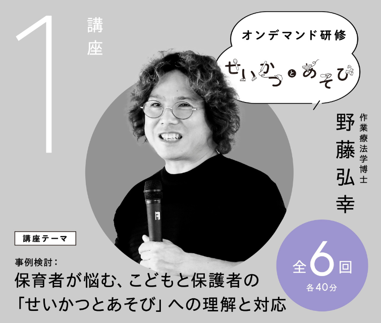 作業療法博士の野藤氏を講師にお招きし、こういったこどもと保護者の「せいかつとあそび」の姿への援助をお話しいただきます。
