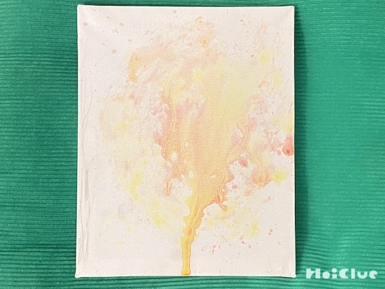 でも、色がキャンバスをつたって垂れていく様子や混ざり合ったグラデーションがおもしろく、全く別のモノになりましたが、我が家の大切な作品の1つになりました。