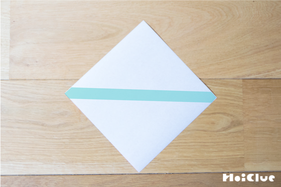 5、一度開いて、写真の水色の部分にのりを塗り、4の状態に戻します。