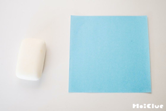 2. 折り紙の裏面に、石けんで絵を描きます。