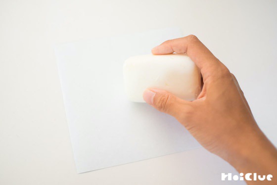 今回は、この石けんを使った、あぶりだし遊びをご紹介します。