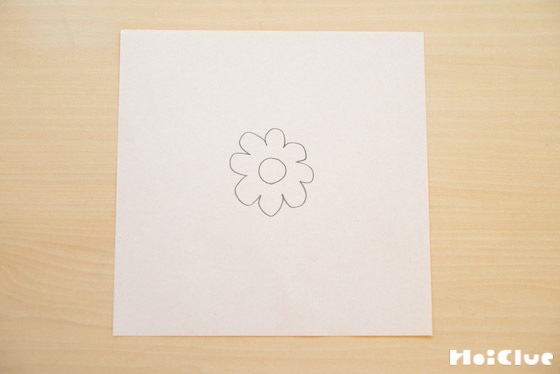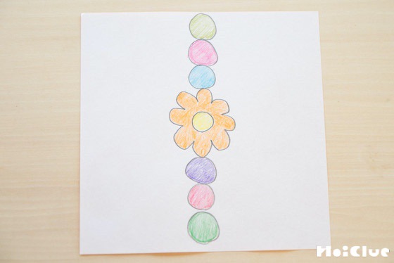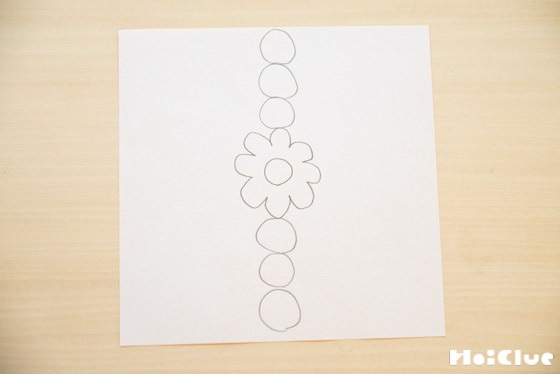 3. メインのパーツの上下に、紙の端まで丸を描きます。