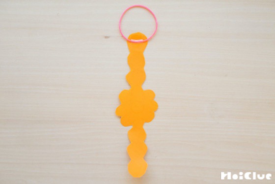 6. 裏返しにして、端に輪ゴムをセロハンテープで留めます。