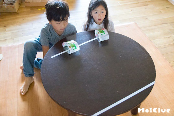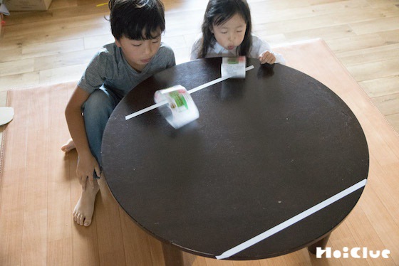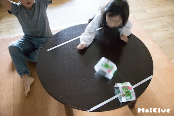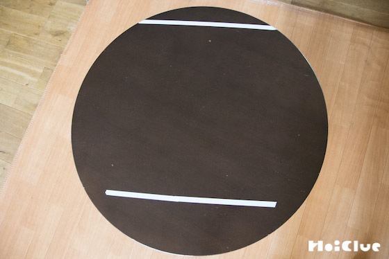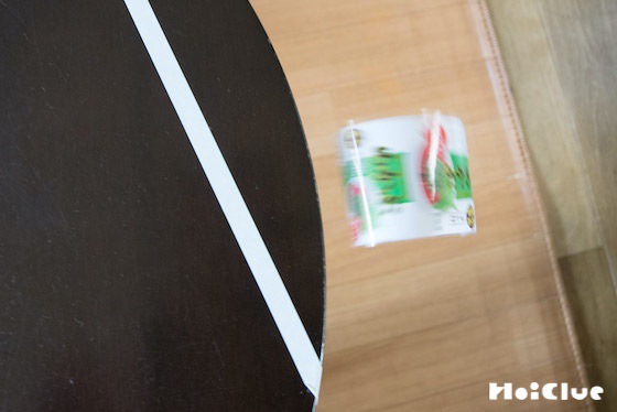 2. テーブルに、スタート・ゴールの目印となるマスキングテープを貼ります。