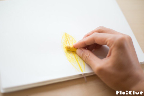 「クレヨンをもって、いっしょにこすりましょう!」