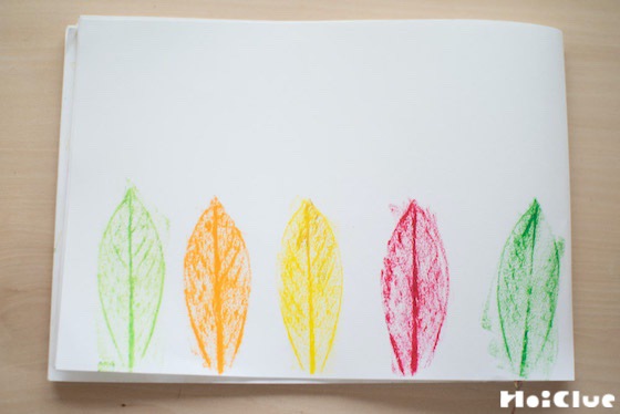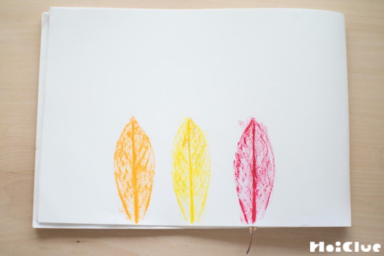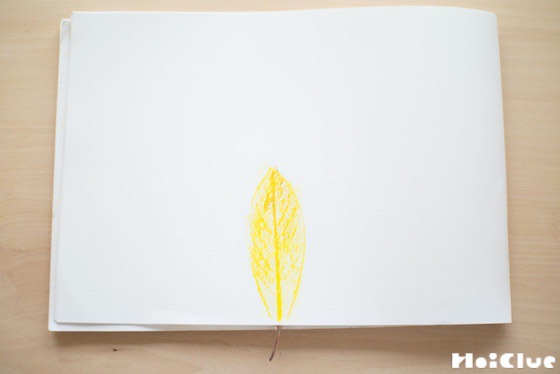 1. 落ち葉をお絵描き帳の上に置きます。