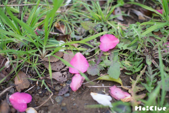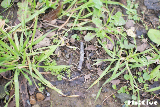 1. まず公園や園庭に出て、「小枝=薪」を探します。